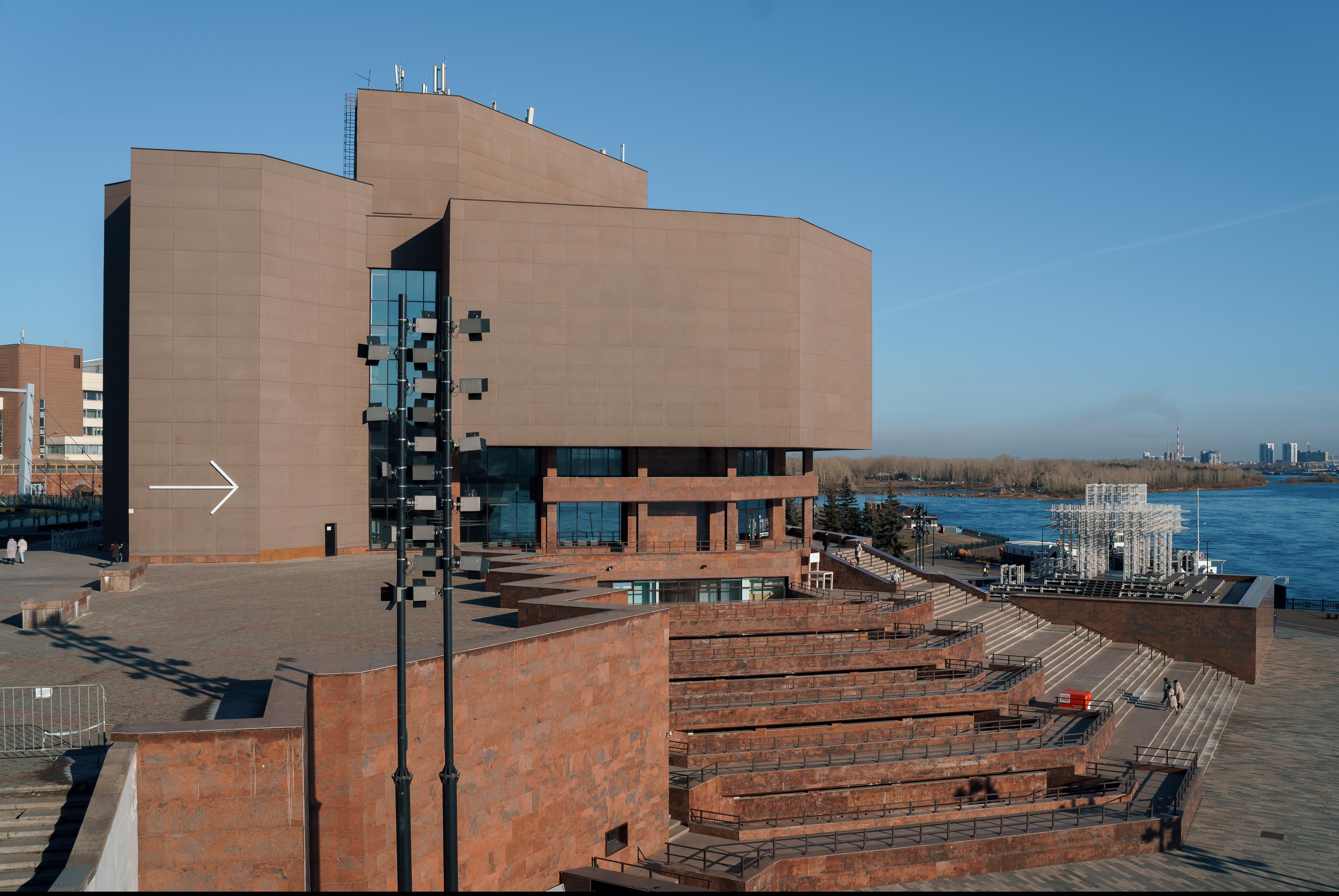 Здание Музейного центра «Площадь Мира» вдохновлено гранитным памятником природы – Красноярскими Столбами. Архитектор Арэг Демирханов вдохновлялся цветом, фактурой и формами скал. Внутри музей – настоящий лабиринт с множеством тупиков, узких коридоров, закоулков, но также и огромные залы с высокими потолками и воздушные лестницы.